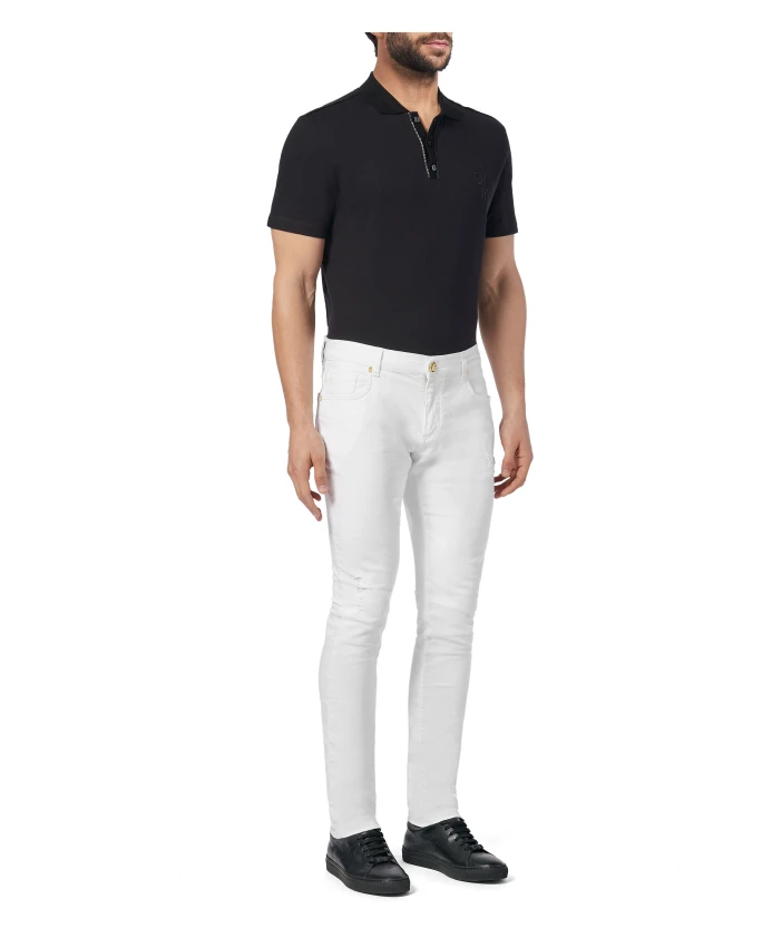 Джинсы Billionaire Slim Fit Baroque Jeans - это джинсы из эластичного денима с эффектом потертости и монограммой в стиле барокко на заднем кармане, предлагающие изысканный взгляд на повседневную одежду. Ключевые особенности: Белый | Деним | Эластичный материал | Пять карманов | Застежка-молния | Металлическая пуговица на поясе | Вышивка монограммы в стиле барокко на правом заднем кармане | Кожаная этикетка с ламинированным принтом на обратной стороне | Швы табачного цвета | Герб на застежке-молнии и металлической пуговице | Размеры и посадка: Ширина штанины внизу: 17 см | Супер узкий крой