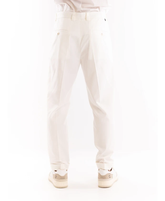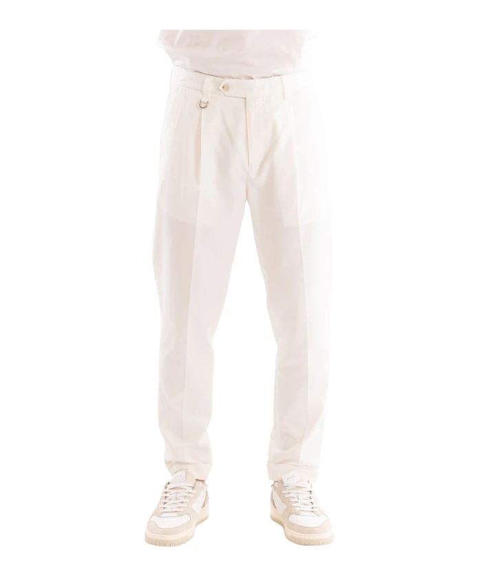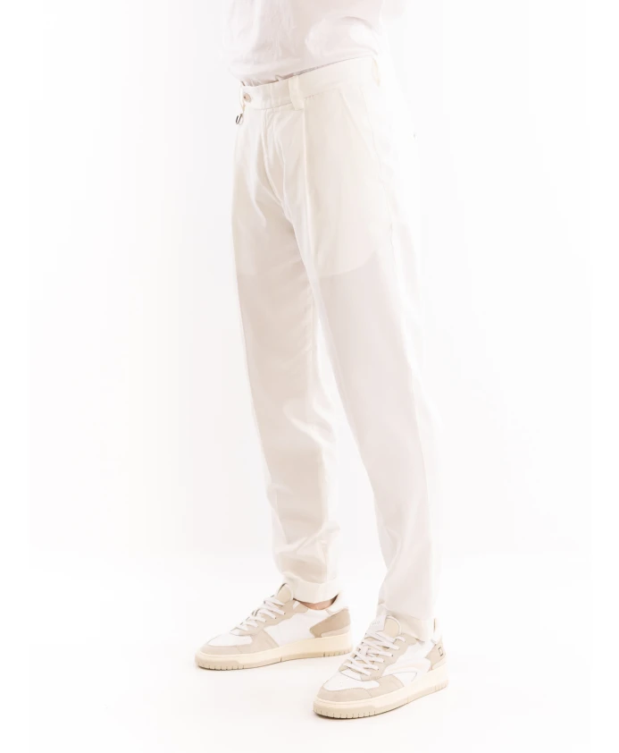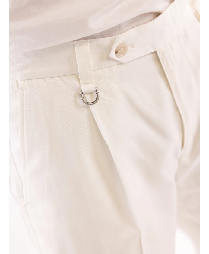 Брюки-чинос Paolo Pecora из легкой ткани кремового цвета, созданные для элегантного повседневного образа. С передними складками и длиной до щиколотки, создающие современный и универсальный силуэт. Ключевые особенности: Бежевый | Кремовый | Лиоцелл | Косые передние карманы (американский стиль) | Прорезные карманы сзади на пуговицах | Застежка на пуговицы | Передние складки | Длина до щиколотки | Узкий низ с подворотом | Размеры и посадка: Рост модели 180 см, размер 48 | Обычный крой с заниженной проймой | Длина до щиколотки | Узкий низ с подворотом | Состав и уход: 65% лиоцелл | 35% хлопок