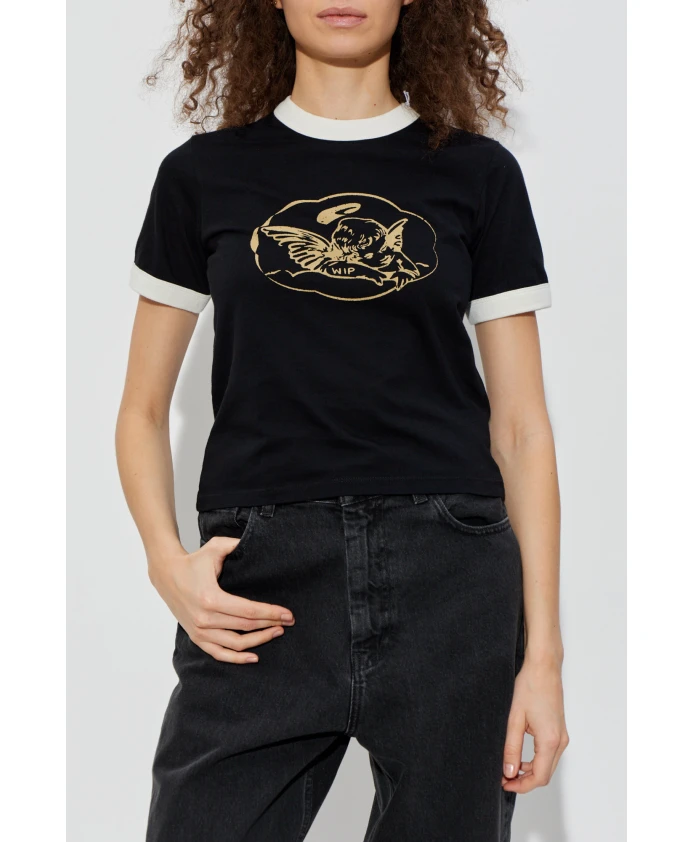 Футболка Carhartt WIP Printed T-Shirt сочетает в себе классический, слегка приталенный крой и эффектный бежево-золотой принт с изображением ангела, создавая изысканный спортивный образ, который непременно привлечет внимание. Ключевые особенности: Черный | Хлопок | Бежевый и золотой принт с изображением ангела спереди и минималистичной надписью «WIP» | Контрастные белые ребристые манжеты и нижний край | Круглый вырез | Короткие рукава | Размеры и посадка: Рост модели: 176 см | Обхват груди: 85 см | Обхват талии: 60 см | Обхват бедер: 89 см | Модель носит размер: S | Слегка приталенный крой
