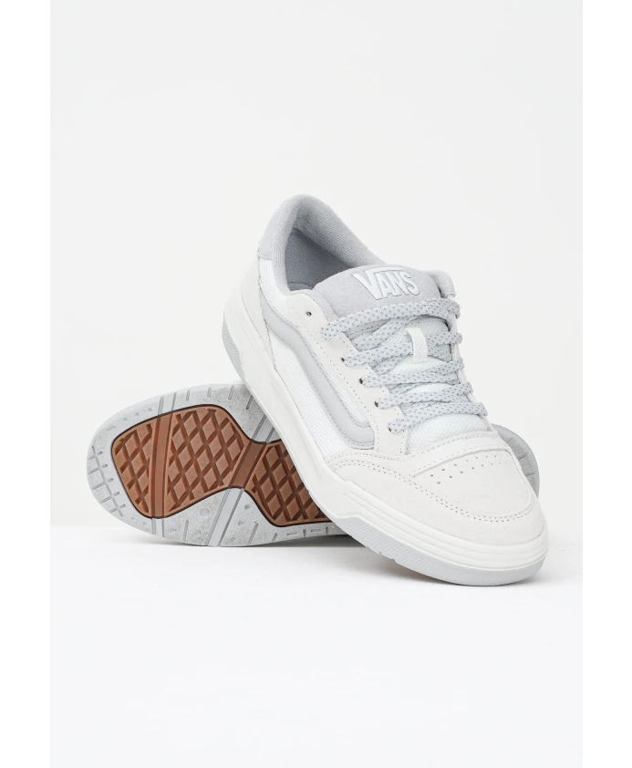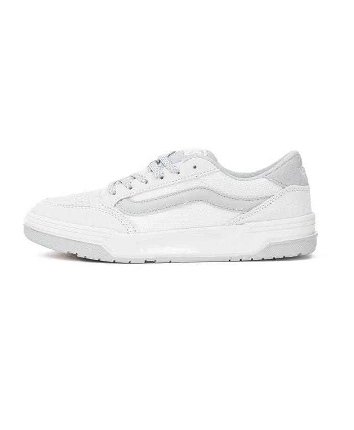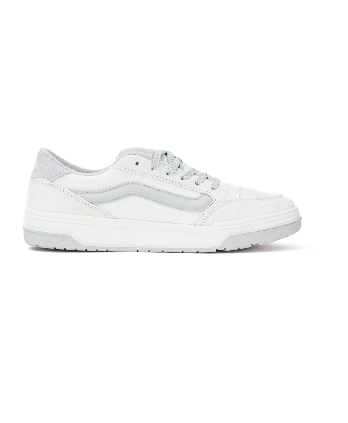 Мужские кроссовки Vans Hylane белого и серого цвета с лаконичным и современным дизайном. Изготовлены из дышащей сетки с замшевыми накладками, люверсами и пяткой. Украшены культовым серым принтом Vans в виде боковой волны и логотипом на задней части. Белая резиновая подошва с серыми деталями обеспечивает комфорт и сцепление, а усиленная промежуточная подошва - амортизацию и долговечность. Универсальная модель, идеально подходящая для создания повседневных и уличных образов с минималистичным и современным акцентом. Сезон осень/зима. Белые низкие кроссовки для мужчин. Материал: кожа и ткань.