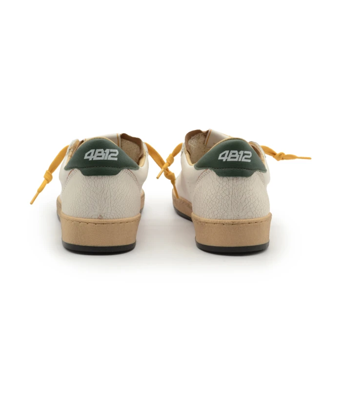 Новые кроссовки 4B12 Play сочетают в себе силуэт в баскетбольном стиле с белым кожаным верхом и винтажной резиновой подошвой. Они обеспечивают комфорт на каждый день благодаря характерной состаренной отделке и контрастным деталям логотипа. Ключевые особенности: Белый | Белый | Зеленый | Оранжевый | Кожа | Прочная резиновая подошва | Шнуровка | Съемная стелька | Силуэт в теннисном стиле | Состаренная белая резиновая подошва | Контрастный логотип на пятке и сбоку разных цветов | Размер и посадка: Стандартная посадка | Состав материала и уход: Верх: 100% телячья кожа | Подошва: 100% резина