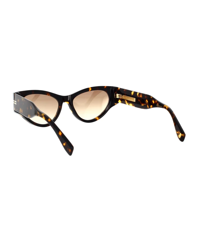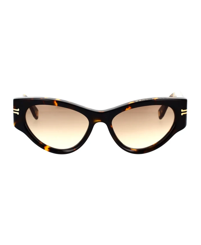 Представляем солнцезащитные очки Marc Jacobs MJ 1045/S 086. Элегантные и смелые, эти очки созданы для ценителей модного дизайна. Большая оправа в форме капли, удлиненная для эффекта «кошачьего глаза», изготовлена из ацетата с леопардовым принтом, имеет закругленные углы и современную 3D-отделку. Дух Marc Jacobs проявляется в характерных деталях отделки: выгравированный логотип в виде буквы вверху, культовая деталь JJ вдоль дужек и металлические пластины с выгравированным логотипом, видимые на внутренней стороне дужек и на концах. Пятишаговые шарниры обеспечивают максимальную прочность.