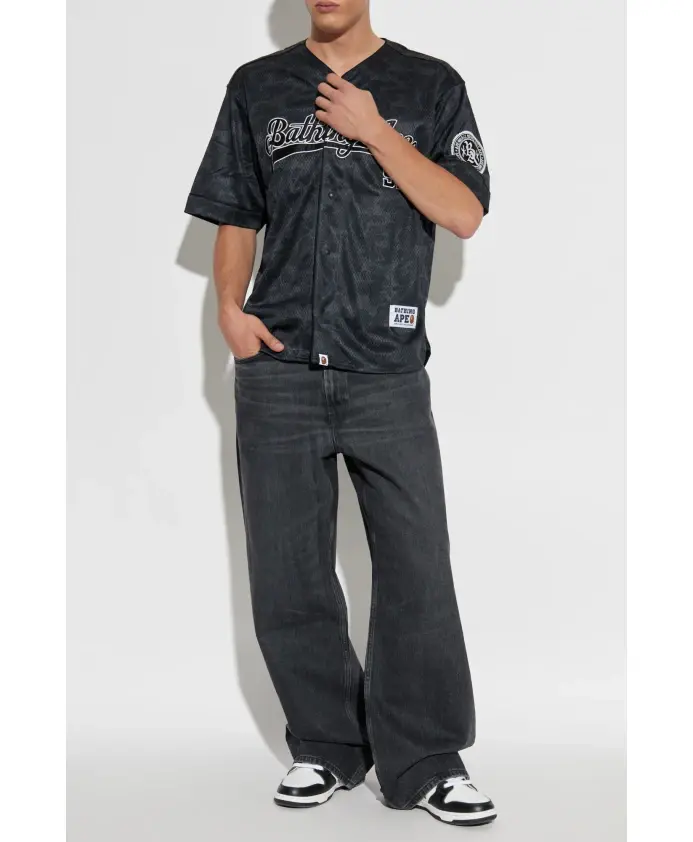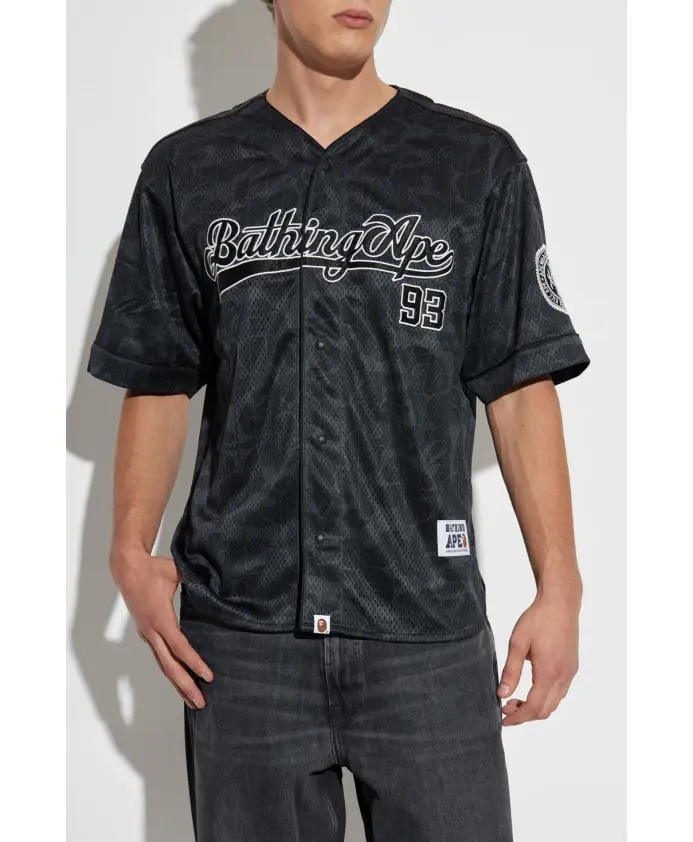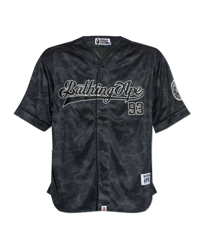Рубашка LOGO SHIRT от A BATHING APE воплощает в себе суть современной элегантности, сочетающейся со спортивным стилем. Серый оттенок подчеркивает ее универсальность, а свободный силуэт в стиле бейсбольной формы с короткими рукавами обеспечивает исключительный комфорт в теплые дни. Тонкий камуфляжный принт на дышащей сетке добавляет индивидуальности и подчеркивает фирменное наследие бренда. Эта рубашка создана с тщательным вниманием к каждой детали: спереди она застегивается на аккуратно выполненные кнопки, причем большие кнопки в стиле бейсбольной формы особенно привлекают внимание.