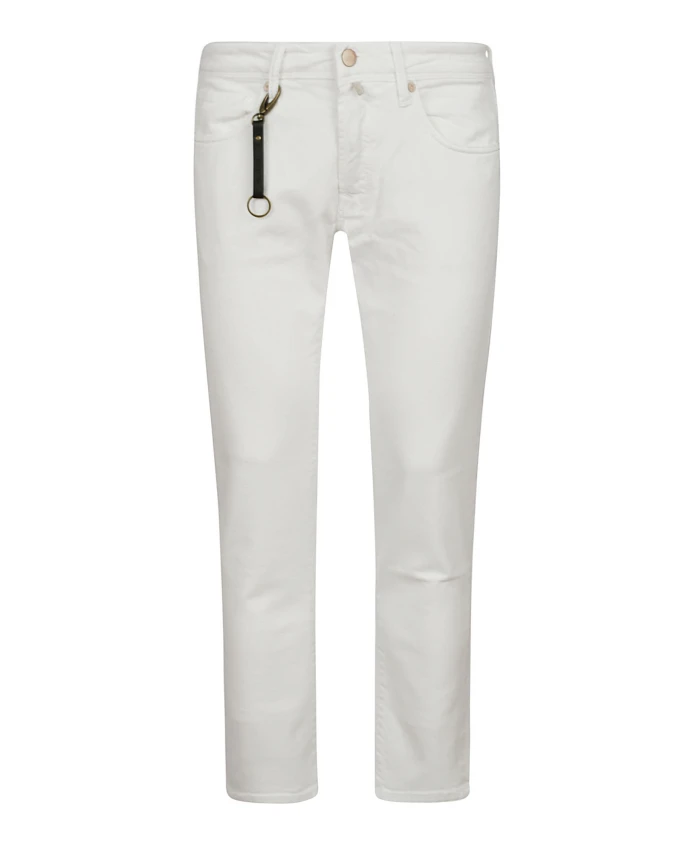 Расширьте свою коллекцию джинсов с помощью этих стильных зауженных джинсов от Incotex, изготовленных из белого хлопка. Классический дизайн с пятью карманами, застежкой на пуговицы и кожаной нашивкой с тисненым логотипом делает эти джинсы одновременно комфортными и стильными. Основные характеристики: Белый | Хлопок | Пять карманов | Застежка на пуговицы | Кожаная нашивка с тисненым логотипом | Металлический и кожаный брелок для ключей | Размер и посадка: Зауженный крой | Состав и уход: 98% хлопок | 2% эластан | Машинная стирка в холодной воде, сушка в барабане при низкой температуре