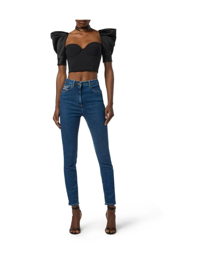 Топ от Элизабетты Франки, сшитый из крепа и атласа «дюшес», сочетает в себе структурированный силуэт в стиле бюстье с эффектными плиссированными рукавами-фонариками, создавая изысканный и выразительный образ. Ключевые особенности: Черный | Полиэстер | Подкладка из атласа с монограммой | Застежка-молния сзади | Широкие рукава-фонарики | Плиссированная конструкция рукавов для объема | Формованные вставки в стиле бюстье на чашках и бедрах | Размеры и посадка: Длина 43 см для размера IT 40 | Приталенный крой | Рост модели 177 см, размер IT 40 | Состав и уход: 95% полиэстер | 5% эластан