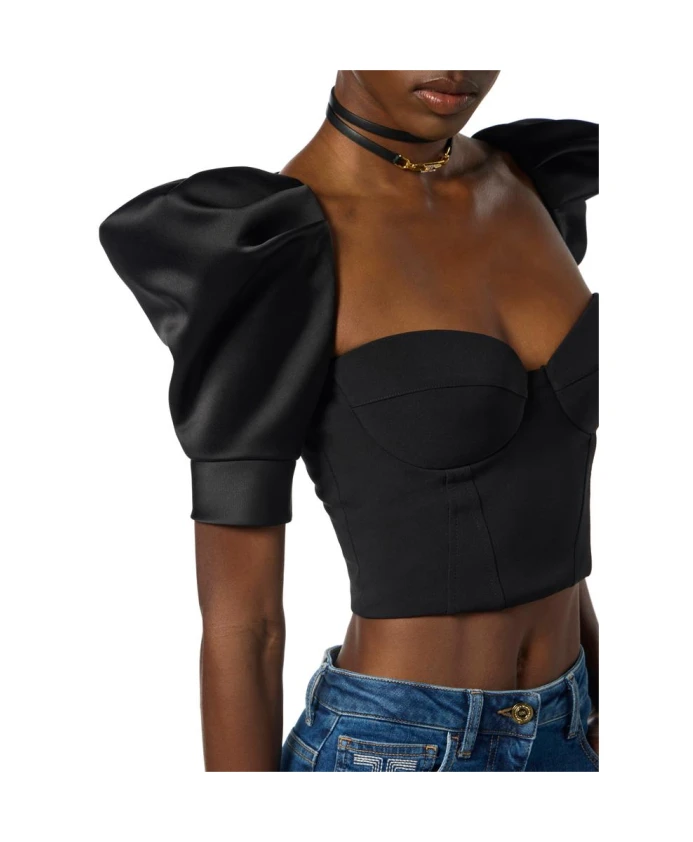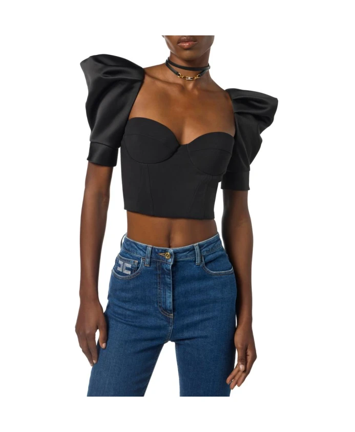 Топ из крепа и атласа «дюшес» Elisabetta Franchi, черный