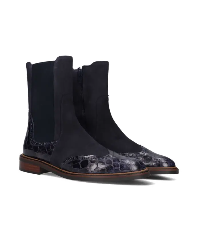 Привлеките всеобщее внимание этими стильными ботинками челси от Pertini, модель 33063. Эти женские ботинки украшены эффектным крокодиловым принтом на красивом синем замшевом верхе. Мягкая кожаная подкладка обеспечит комфорт во время осенних прогулок в парке или уютных зимних прогулок по городу. Круглый носок и прочный каблук-блок высотой 3 см придают элегантный вид, не жертвуя комфортом. Практичная застежка-молния позволяет легко надевать и снимать их. Сочетайте эти ботинки с теплым шерстяным платьем или модным объемным свитером для создания идеального осеннего или зимнего образа.