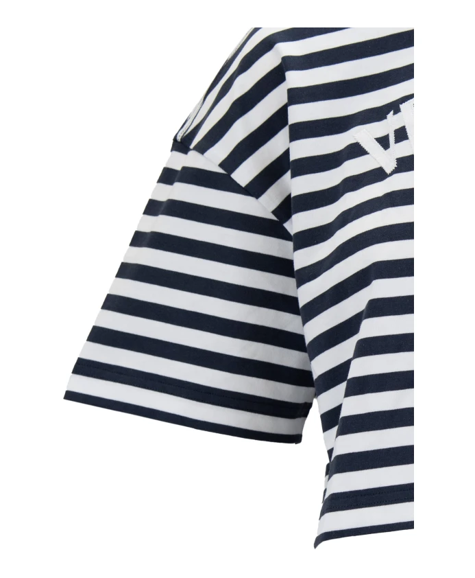Полосатый укороченный топ с вышитым логотипом. Versace, синий 35 102₽