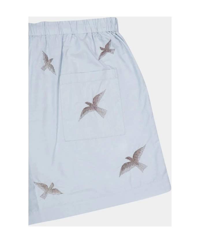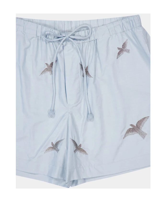 Ощутите идеальное сочетание комфорта и изысканности с светло-голубыми шортами Columbus от BAZISZT. Изготовленные из роскошной смеси хлопка и шелка, эти шорты обеспечивают легкость, воздухопроницаемость и утонченную текстуру. Созданные для непринужденного летнего стиля, шорты свободного кроя имеют эластичный пояс для комфорта и универсальности. Мягкий светло-голубой оттенок добавляет вневременной элегантности, делая их идеальными как для повседневных, так и для изысканных образов в теплую погоду. Цвет: Синий. Состав: 65% хлопок, 35% шелк. Инструкции по уходу: Только химчистка.