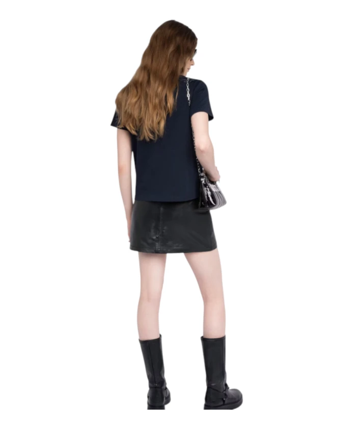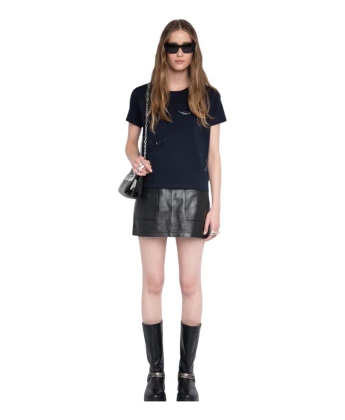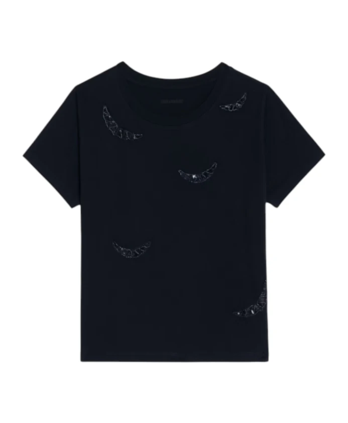 Футболка Zadig & Voltaire Alys в классическом повседневном крое с фирменной вышивкой в виде крыльев. Эта футболка с короткими рукавами - универсальная базовая вещь гардероба с ненавязчивой деталью бренда. Ключевые особенности: Синий | Темно-синий | Хлопок | Круглый вырез | Короткие рукава | Вышитые фирменные крылья | Размер и посадка: Классический крой; немного маломерит - для более свободной посадки закажите на размер больше. | Состав ткани и уход: 100% хлопок | Машинная стирка наизнанку при 30°C в щадящем режиме. Сушить на воздухе. Гладить наизнанку при низкой температуре.