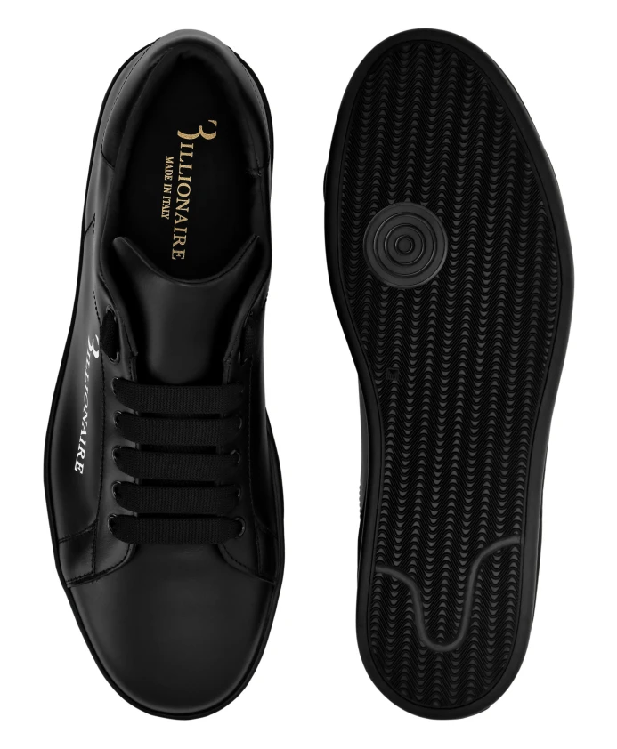 Низкие кроссовки Billionaire сочетают в себе высококачественную телячью кожу и низкий силуэт, создавая изысканный повседневный образ. Разработанные для стиля и комфорта, они дополнят как повседневные, так и элегантные повседневные наряды. Ключевые особенности: Черный цвет | Телячья кожа | Шнуровка | Полиуретановая стелька | Резиновая подошва | Низкий силуэт | Круглый носок | Состав и уход: Верх: 100% телячья кожа | Подкладка: 100% расщепленная коровья кожа | Стелька: 100% полиуретан | Подошва: 100% резина | Чистить в соответствии с инструкциями по уходу на этикетке изделия.