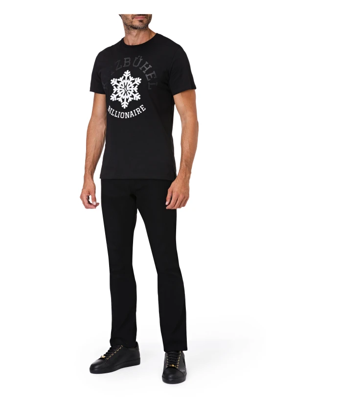 Футболка Billionaire с круглым вырезом - это хлопковая трикотажная футболка с флокированным принтом Winter Club, вдохновленным Китцбюэлем, и эмблемой бренда на кокетке, созданная для элегантного повседневного стиля. Ключевые особенности: Черный | Хлопок | Прочная двойная строчка по низу и манжетам | Круглый вырез | Флокированный принт на передней части с увеличенной снежинкой и надписью Maison | Знаменитая эмблема на кокетке | Двойная строчка по нижнему краю и манжетам | Состав и уход: 100% хлопок | Машинная стирка в холодной воде, сушка в барабане при низкой температуре.