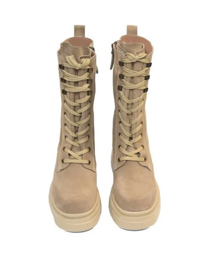 Ботинки Emanuelle Vee Hero на шнуровке сочетают в себе замшевую отделку и боковую молнию для удобства надевания и снимания. Внутренняя отделка из кожи и мягкая стелька обеспечивают комфорт на каждый день благодаря резиновой подошве высотой 5 см. Ключевые особенности: Бежевый | Замша | Застежка на шнуровке с помощью молнии | Мягкая стелька | Шнуровка спереди | Боковая молния для удобства застегивания | Кожаная подкладка и мягкая стелька | Размеры и посадка: Высота подошвы: 5 см | Высота голенища: 24 см | Состав и уход: Замша | Кожа (подкладка и стелька) | Резиновая подошва