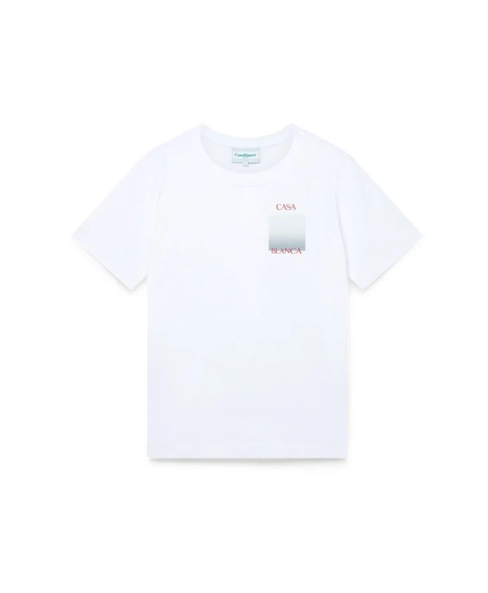Футболка Casablanca D'Égradà Logo с короткими рукавами из хлопка украшена наложенным логотипом и сезонным серым градиентным квадратным принтом. Классический круглый вырез горловины идеально подходит для повседневного ношения. Основные характеристики: Белый | Хлопок | Круглый вырез горловины | Короткие рукава | Наложенный логотип | Серый градиентный квадратный принт | Размер и посадка: Соответствует стандартному размеру; выбирайте свой обычный размер. | Состав ткани и уход: 100% хлопок | Деликатный режим стирки. Стирать и гладить наизнанку. Не сушить в сушильной машине.