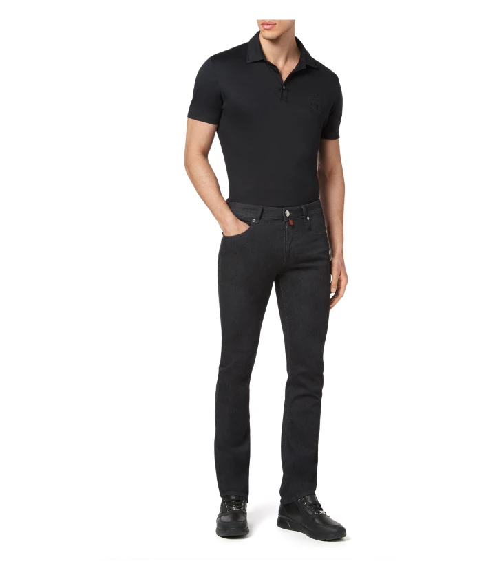 Джинсовые брюки Billionaire Super Straight Cut Fit отличаются чистым, прямым силуэтом, созданным для элегантного повседневного стиля. Дизайн основан на структурированном крое и ненавязчивых металлических деталях, что делает их высококачественной базовой моделью. Ключевые особенности: Синий | Темно-синий | Хлопок | Эластичная ткань | Кожаные вставки | Металлическая фурнитура | Прямой крой | Размеры и посадка: Прямой крой | Состав ткани и уход: Ткань: 82% хлопок, 18% эластан | Подкладка: 65% полиэстер, 35% хлопок | Вставка: 100% натуральная кожа | Фурнитура: 100% металл