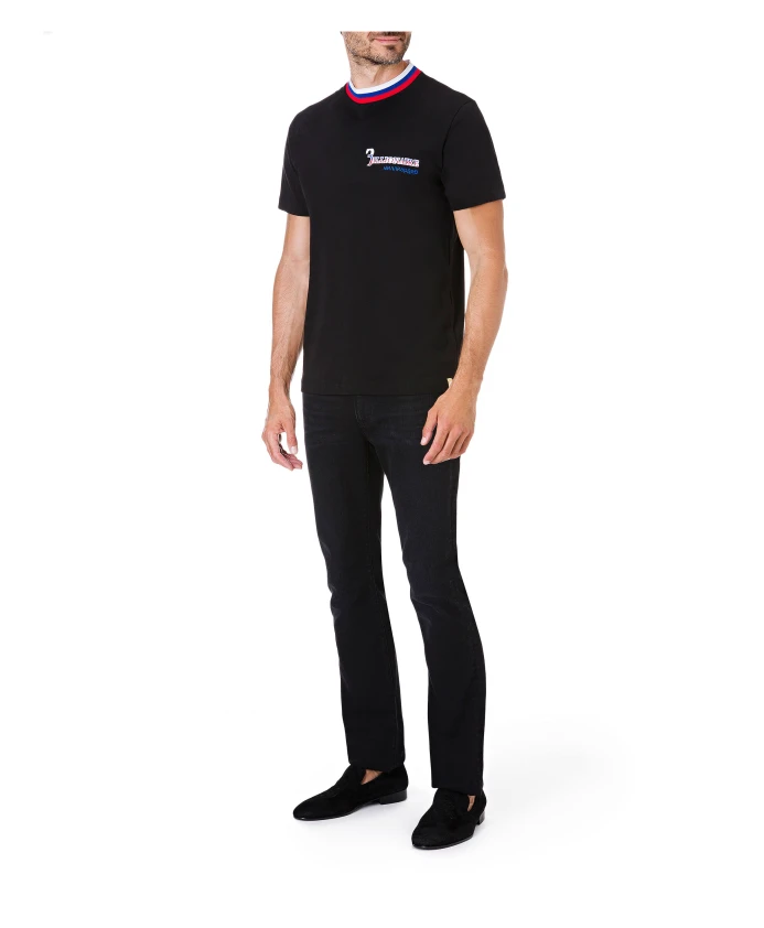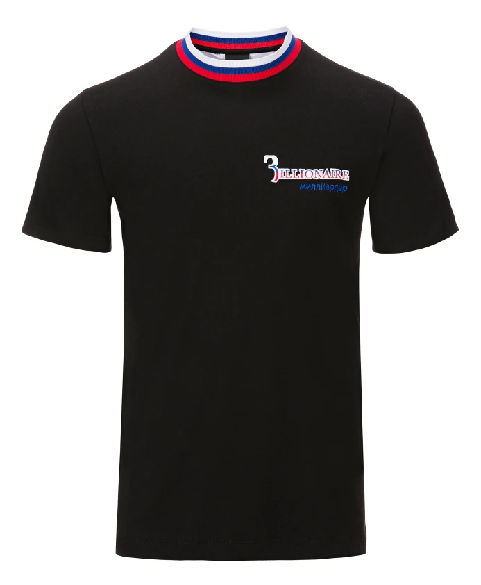 Футболка Billionaire с круглым вырезом - это хлопковая трикотажная футболка из капсульной коллекции бренда, посвященной Чемпионату мира по футболу. Она украшена фирменной надписью и трехцветной отделкой на воротнике. Созданная для повседневной носки и в стиле, ориентированном на болельщиков, она подчеркивает фирменные принтованные детали. Ключевые особенности: Черный | Хлопок | Круглый вырез | Короткие рукава | Фирменная надпись, напечатанная в трех цветах | Декоративный принт на воротнике | Хлопковый трикотаж | Состав и уход: Ткань: 100% хлопок | Вставка: 100% хлопок