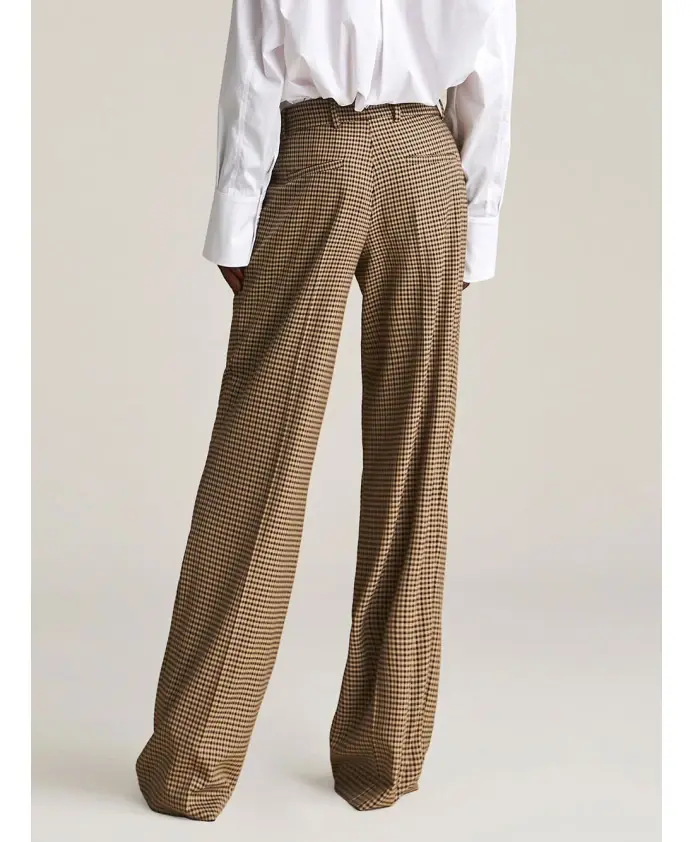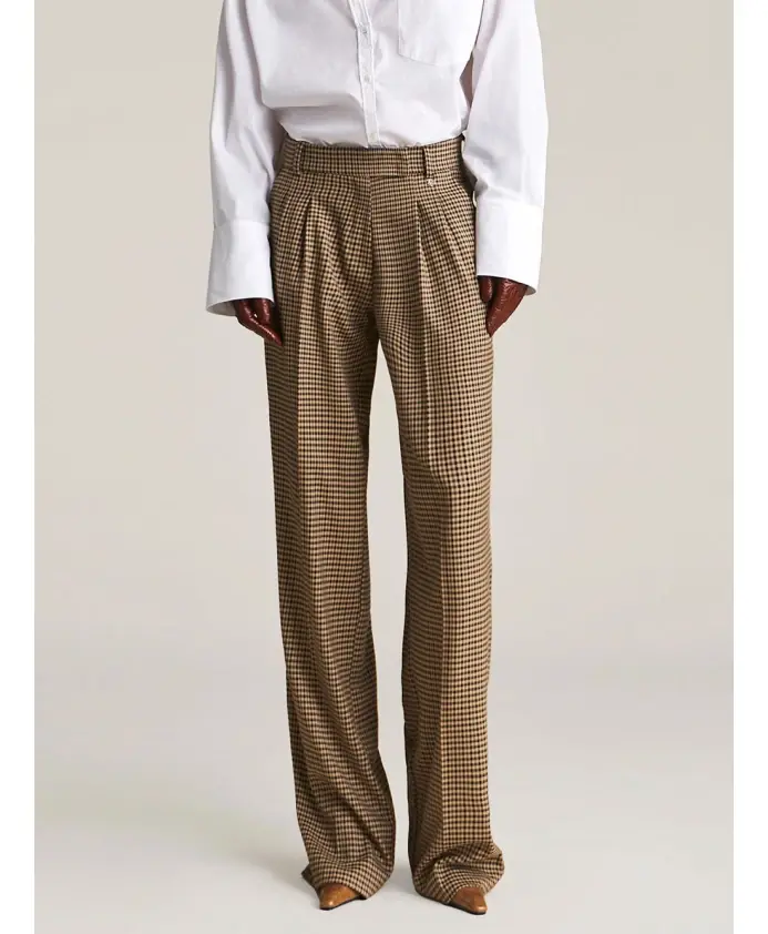 Брюки-палаццо Aniye By Lexa сочетают в себе мягкий, широкий силуэт и непринужденный, элегантный вид. Дизайн включает клетчатый узор со структурированными вытачками и отглаженными складками, создавая изысканный, но в то же время повседневный стиль. Ключевые особенности: Коричневый | Черный | Смесь вискозы | Эластичный материал | Боковые карманы | Задние карманы | Широкий силуэт | Клетчатый узор | Вытачки и отглаженные складки | Металлический логотип "AB" | Размеры и посадка: Широкий крой | Свободный крой | Силуэт палаццо | Состав ткани и уход: Эластичная смесь вискозы