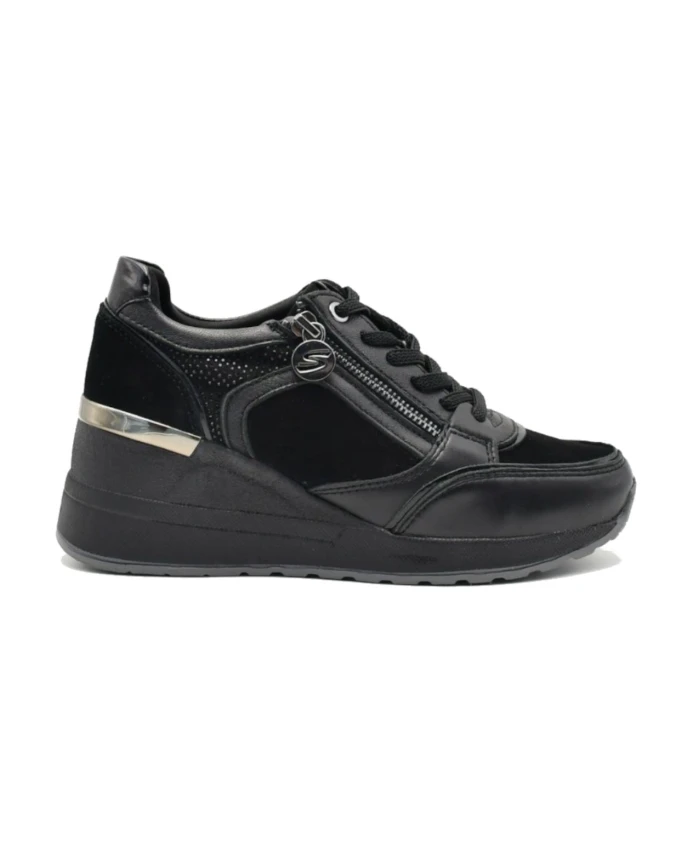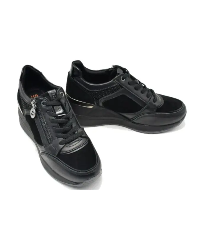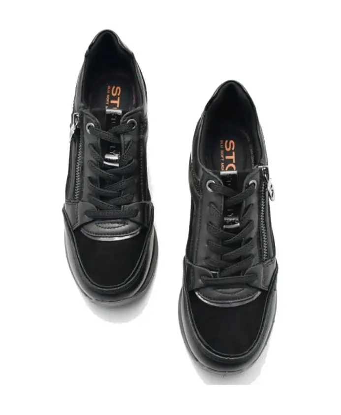 Кроссовки STONEFLY с сочетанием кожи и боковых деталей, украшенных стразами. Они оснащены съемной стелькой Blu Soft Memory и боковой молнией для удобства надевания и снимания. Ключевые особенности: Черный | Кожа | Сверхлегкая подошва | Амортизация с помощью стельки Blu Soft Memory | Шнуровка | Боковая молния для удобства надевания | Съемная мягкая стелька (Blu Soft Memory) | Текстурированная кожа | Детали из страз по бокам | Размеры и посадка: Каблук-танкетка: 6 см | Платформа: 1,8 см | Состав и уход: Кожа | Текстильная подкладка | Съемная стелька Blu Soft Memory