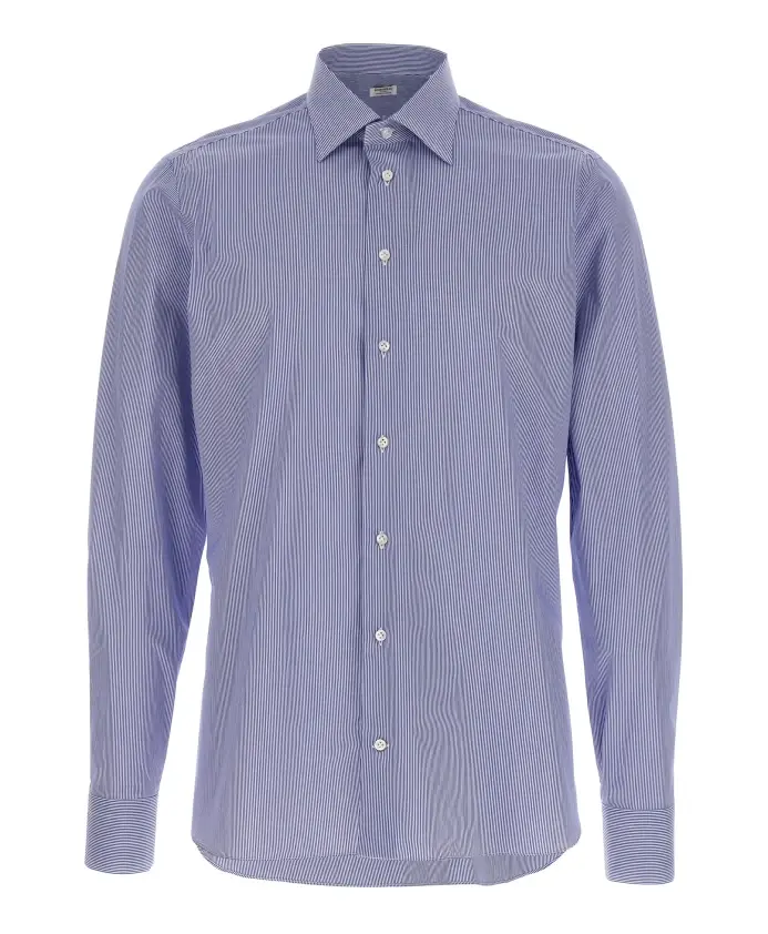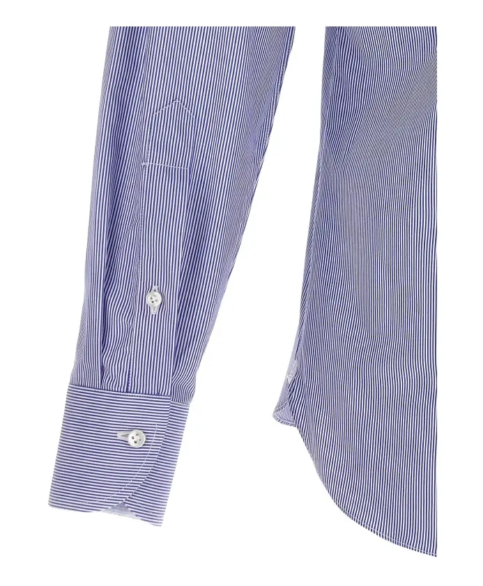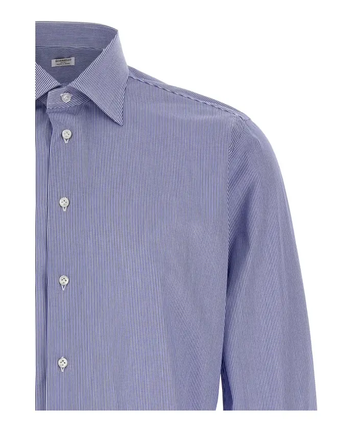 Рубашка Borriello Napoli Spaccanapoli - это полосатая рубашка из хлопкового твила, сочетающая в себе приталенный силуэт и классические детали. Благодаря четким линиям и манжетам на пуговицах она подходит как для стиля smart casual, так и для повседневной носки. Ключевые особенности: Синий | Хлопок | Застежка на пуговицы | Манжеты на пуговицах | Полосатый узор | Заостренный воротник | Длинные рукава с манжетами | Размеры и посадка: Стандартный крой | Состав материала и уход: 100% хлопок | Машинная стирка или химчистка; не отбеливать; не сушить в сушильной машине.