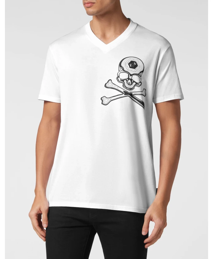 Футболка Philipp Plein V-Neck Skull&Bones сочетает в себе классический V-образный вырез и фирменный мотив черепа. Хлопковый трикотаж и шестиугольная нашивка из полипропилена на сафьяновой коже добавляют изюминку и делают футболку стильной и удобной в носке. Основные характеристики: Белый | Хлопок | V-образный вырез | Принт с черепом спереди | Шестиугольная нашивка из полипропилена на сафьяновой коже слева на груди | Ребристый V-образный вырез | Двойная строчка | Состав и уход: 100% хлопок | Нашивка из сафьяновой кожи | Следуйте инструкциям по уходу на этикетке.