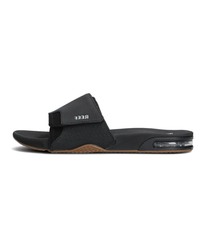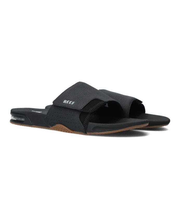 Из коллекции Reef представляем невероятно удобные мужские тапочки FANNING SLIDE. Эта черная модель имеет широкий верх из синтетической кожи с перфорацией по бокам и белым резиновым логотипом. Неопреновая подкладка и тонкая амортизация обеспечивают приятное ощущение мягкости и оптимальный комфорт. Резиновая стелька обеспечивает анатомическую поддержку для максимального комфорта и амортизации. Нескользящая резиновая подошва толщиной около 3 сантиметров имеет встроенный воздушный блок под пяткой для оптимальной амортизации. Идеальные тапочки для любых приключений!