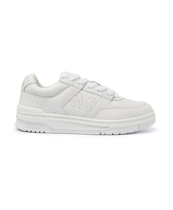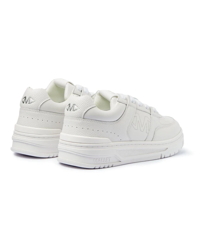 Представляем кроссовки Clayton Triple White от Mallet London - смелый новый силуэт сезона с элементами скейтбординга. Модель выполнена из белой кожи с подкладкой и накладками, промежуточных слоев из зернистой кожи и матового белого нейлонового язычка. Новый ромбовидный логотип Mallet придает ей современный вид. Созданные для повседневной носки, эти кроссовки отличаются лаконичным дизайном в одной цветовой гамме и гладкой текстурой для изысканного завершения. Завершают образ белые шнурки, белая сетчатая подкладка и белая подошва с матовым белым задником из ТПУ.