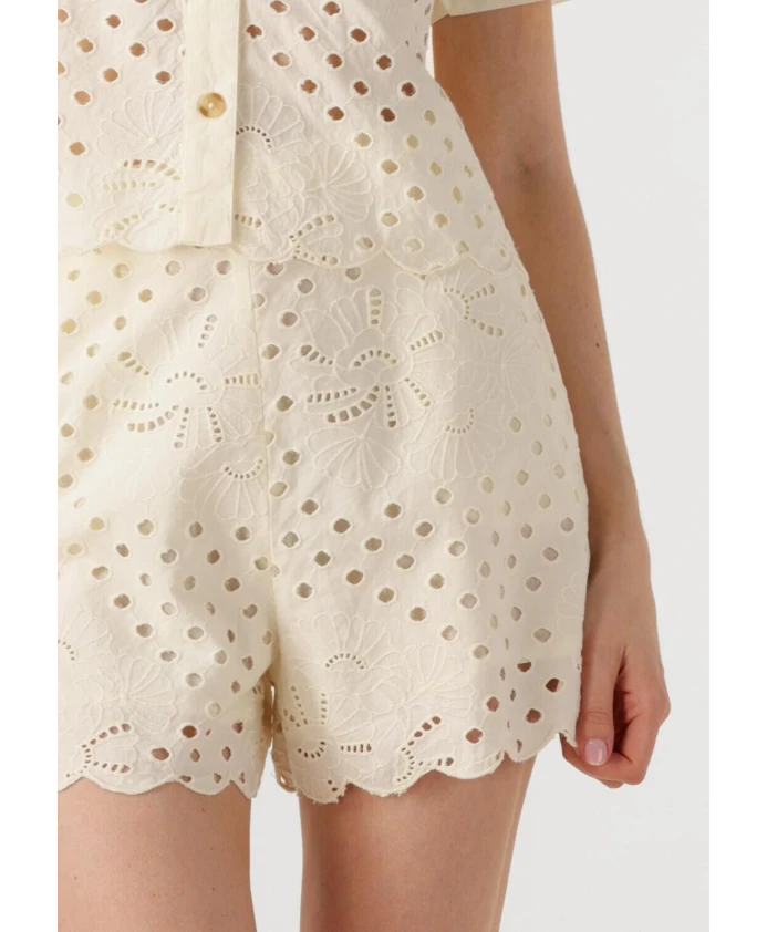 Шорты LOUIZON NIDO - это легкие хлопковые шорты с вышитыми деталями, созданные для расслабленных весенних и летних дней. Они идеально подходят для повседневных прогулок и легко сочетаются с блузками или футболками, создавая свежий и теплый образ. Ключевые особенности: Бежевый | Цвет экрю | Хлопок | Пояс | Вышитые детали | Кружевная отделка | Размеры и посадка: Прямой крой | Обычная талия | Состав материала и уход: 100% хлопок | Только ручная стирка; гладить при температуре не выше 110°C; не сушить в сушильной машине; профессиональная химчистка; не отбеливать.