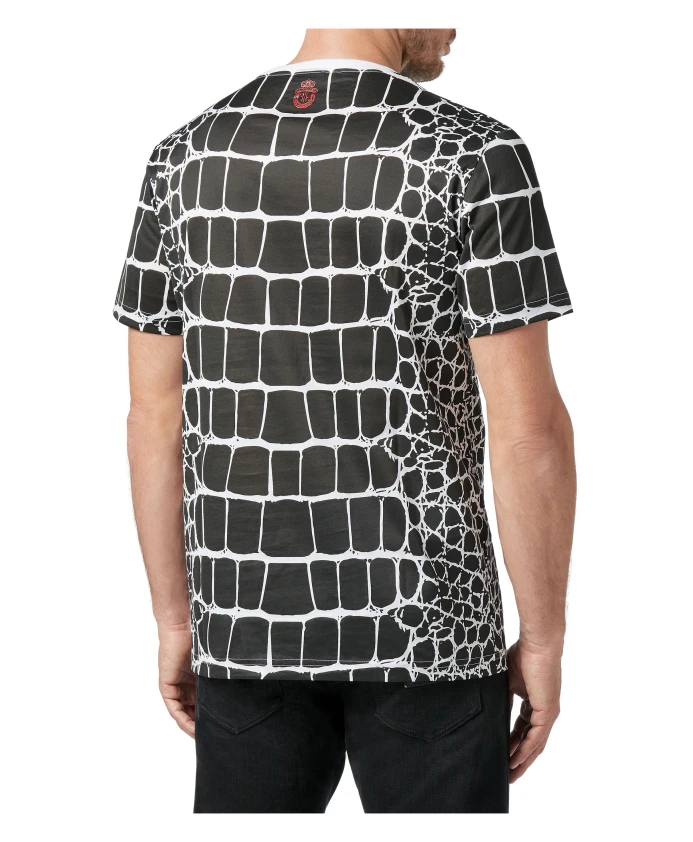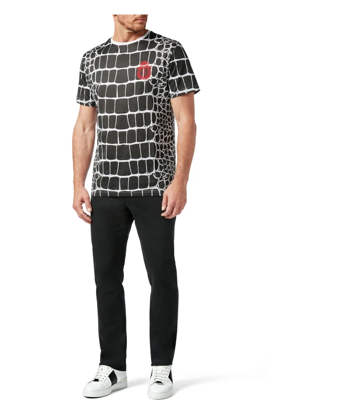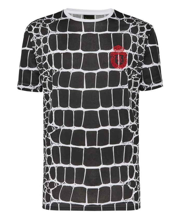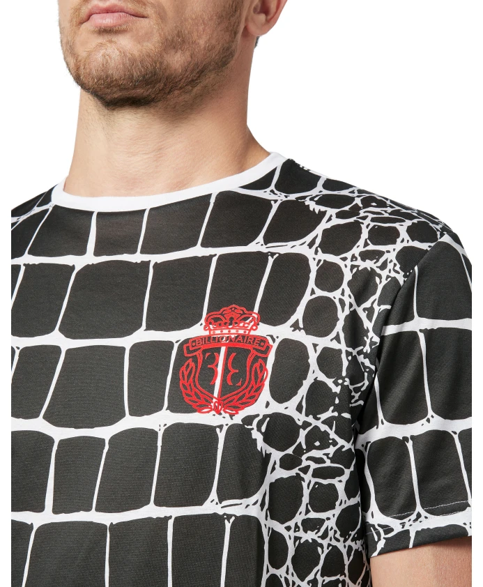 Футболка Billionaire Crest с круглым вырезом - это хлопковая трикотажная футболка, сочетающая в себе принт под крокодиловую кожу по всей поверхности и бархатистый герб бренда на груди, что делает ее идеальной для изысканного повседневного стиля. Ключевые особенности: Черный | Хлопок | Удобный хлопковый трикотаж | Ребристый воротник | Двойная строчка на манжетах и подоле | Круглый вырез | Принт под крокодиловую кожу по всей поверхности | Бархатистый герб на левой стороне груди | Эмблема, нанесенная методом водной печати, на кокетке | Состав и уход: 100% хлопок