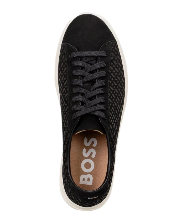 Кроссовки Monogram Kieran из черной замши Hugo, черный