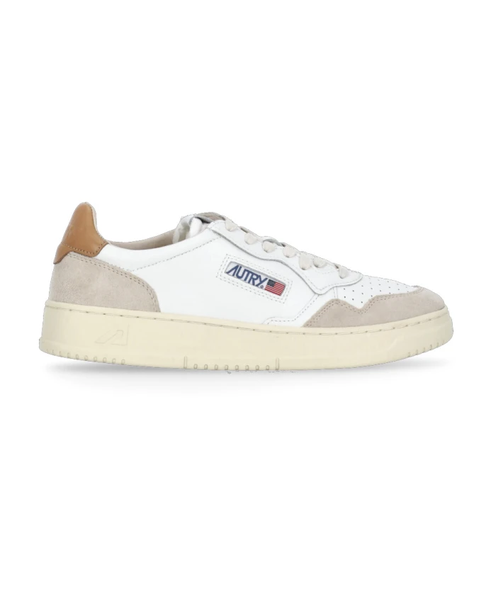 Обновите свой стиль с помощью этих белых низких кроссовок Autry 'Medalist' для мужчин. Изготовленные из мягкой кожи с бежевыми замшевыми деталями, эти кроссовки имеют контрастную оранжевую заднюю часть с тисненым логотипом, вышитый логотип на язычке и культовые детали логотипа по бокам. Закругленный и перфорированный носок, шнуровка плоскими хлопковыми шнурками, мягкий воротник вокруг щиколотки и резиновая подошва обеспечивают стиль и комфорт. Подкладка из смеси кожи, нейлона и хлопковой махровой ткани имеет стельку высотой 2 см. Высота подошвы: 2,5-3,5 см.