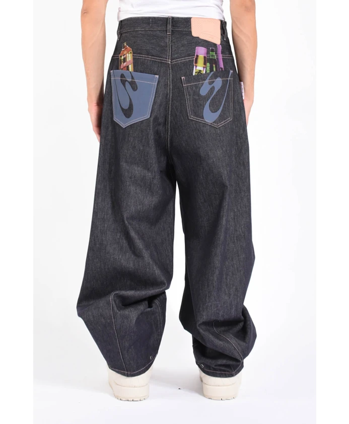 Джинсы свободного кроя с объемным силуэтом и разноцветными цифровыми принтами на спине. Созданы для создания непринужденного, эффектного образа, с регулируемым низом. Ключевые особенности: Синий | Хлопок | Застежка на пуговицы спереди с металлической пуговицей с логотипом | Шлевки для ремня | Пять карманов | Регулируемый низ на кнопках | Разноцветные цифровые принты на спине | Контрастная строчка | Контрастный задний карман | Нашивка с логотипом на поясе сзади | Размеры и посадка: Свободный крой | Рост модели 185 см, размер 31 | Состав и уход: 100% хлопок