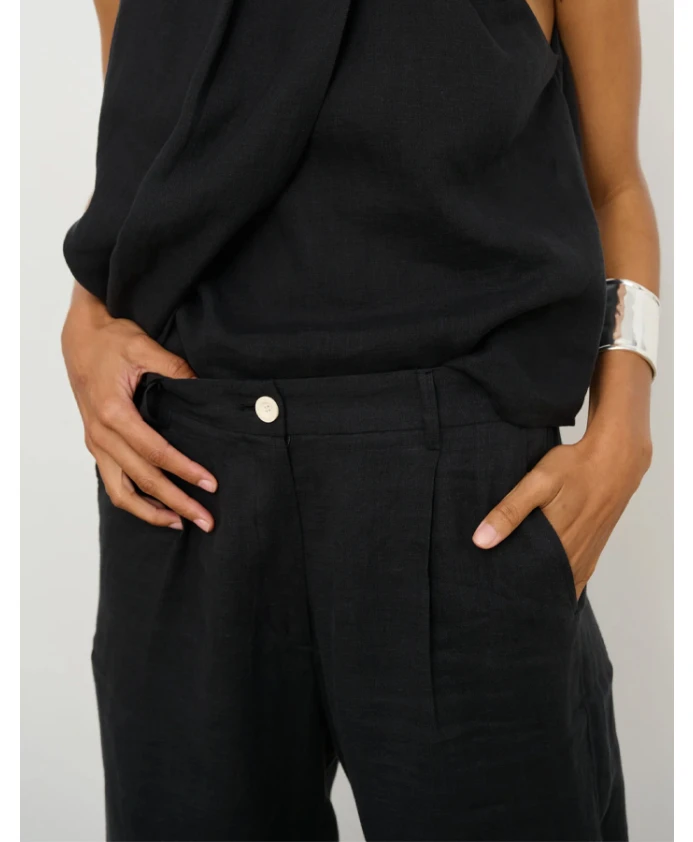 Широкие брюки от Bad Habits - это свободные хлопковые брюки с широкими штанинами, предназначенные для повседневной носки. Они сочетают в себе среднюю посадку и практичные детали, такие как боковые карманы и шлевки для ремня. Ключевые особенности: Черный | Хлопок | Застежка на пуговицу и молнию | Боковые карманы | Шлевки для ремня | Размеры и посадка: Средняя посадка | Широкие штанины | Состав ткани и уход: Хлопок | Машинная стирка в холодной воде, деликатный режим. Сушка в сушилке при низкой температуре. При необходимости гладить при низкой температуре.