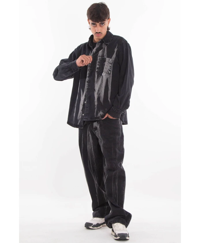 Джинсовая рубашка Arte Antwerp переосмысливает классическую рабочую одежду, используя белые нарисованные метки на черном джинсовом фоне. Свободный силуэт и потайная застежка на пуговицах делают ее универсальным элементом многослойной одежды на каждый день. Ключевые особенности: Черный | Хлопок | Потайная застежка на пуговицах | Нагрудный карман | Петля для крепления логотипа сзади | Белые нарисованные метки | Детали в стиле рабочей одежды | Размеры и посадка: Свободный крой | Длина ниже бедер для удобства многослойной одежды | Состав и уход: 100% хлопок