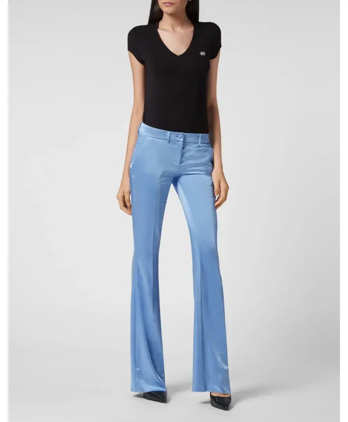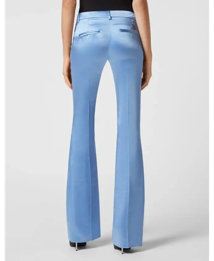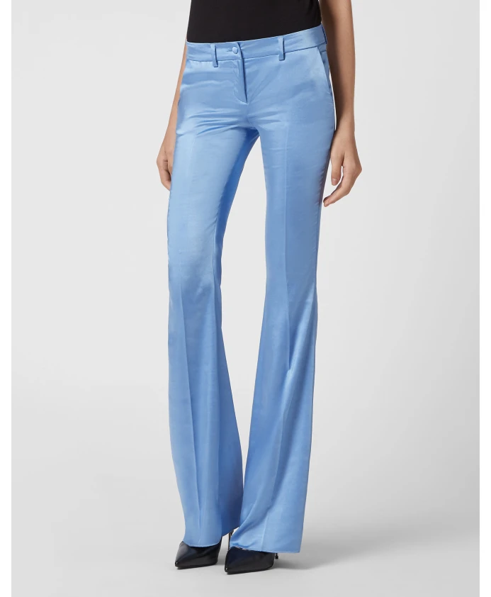 Атласные брюки Philipp Plein преобразят гардероб этого сезона благодаря глянцевой атласной отделке и расклешенному силуэту. Эти брюки отличаются элегантным видом и декоративными пуговицами. Ключевые особенности: Светло-голубой | Полиэстер | Эластичная ткань | Глянцевая отделка | Боковые карманы | Декоративная металлическая пуговица | Расклешенный силуэт | Глянцевый атлас | Размеры и посадка: Расклешенный крой | Широкий крой | Крой карго | Состав и уход: Ткань: 98% полиэстер, 2% эластан | Подкладка: 100% вискоза | Химчистка согласно инструкции по уходу.