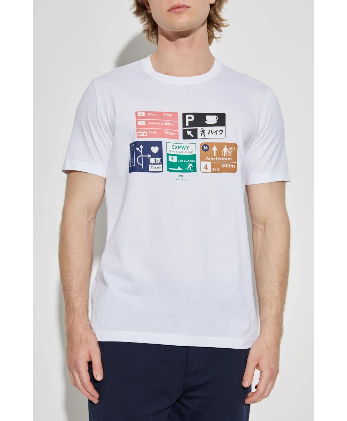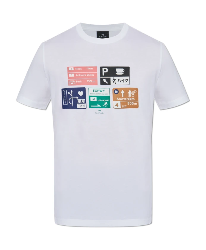 Откройте для себя футболку PS Paul Smith с ярким принтом, идеально сочетающим британскую элегантность и оригинальную креативность. Изготовленная из 100% хлопка, эта футболка обеспечивает комфорт и воздухопроницаемость для любого случая. Ключевые особенности: Белый | 100% хлопок | Дышащая ткань | Круглый вырез | Короткие рукава | Яркий принт, вдохновленный путешествиями по миру | Ненавязчивый логотип PS Paul Smith | Размер и посадка: Классический крой | Состав и уход: 100% хлопок | Машинная стирка в холодной воде, сушка в барабане при низкой температуре