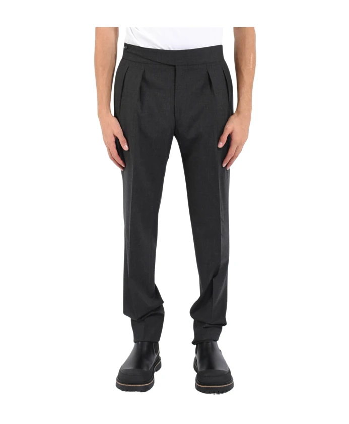 Брюки Tagliatore сочетают в себе строгий крой и изготовлены из натуральной шерсти, что делает их изысканной базовой вещью для офиса или формального гардероба. Дизайн включает двойные складки и высокий пояс (5 см) для элегантного силуэта. Ключевые особенности: Серый | Гриджио | Натуральная шерсть | Прорезные карманы | Высокий пояс (5 см) | Двойные складки | Без подворотов по низу | Аккуратный перед | Размеры и посадка: Рост модели: 1,89 м | Модель носит размер 48 | Стандартный крой | Состав и уход: 98% натуральная шерсть | 2% эластан | Только химчистка.