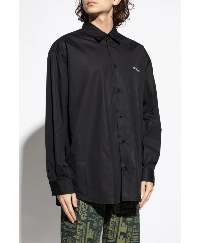 Рубашка Off-White с логотипом - это изысканное изделие, сочетающее в себе вневременной классический стиль и художественный изящество современного дизайна. Изготовленная из высококачественного хлопка, она отличается слегка хрустящей текстурой и обеспечивает исключительный комфорт. Глубокий черный цвет добавляет объема любому силуэту и подчеркивает уникальный характер дизайна. Эта модель со слегка свободным кроем и простым, традиционным воротником излучает непринужденную элегантность. Минималистичная передняя часть отделана едва заметной белой полосой.