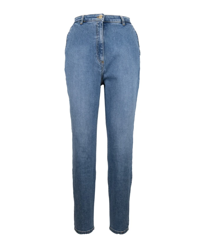 Джинсы Elisabetta Franchi на молнии и пуговицах - стильное и универсальное дополнение к вашему гардеробу. Они отличаются элегантным дизайном с вышитыми деталями бренда «EF» и металлическим логотипом золотистого цвета. Ключевые особенности: Синий | Хлопок | Эластан | Боковые и задние карманы | Застежка на пуговицы | Вышитые детали бренда «EF» | Металлический логотип золотистого цвета | Застежка на молнию и пуговицы спереди | Крой: Узкий | Состав и уход: 99% хлопок | 1% эластан | Машинная стирка в холодной воде, сушка в барабане при низкой температуре