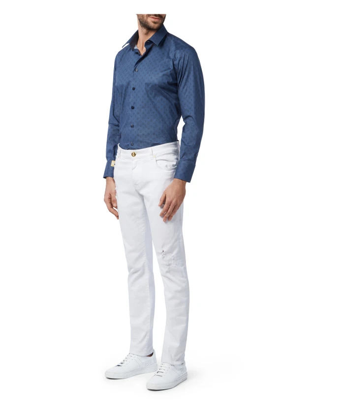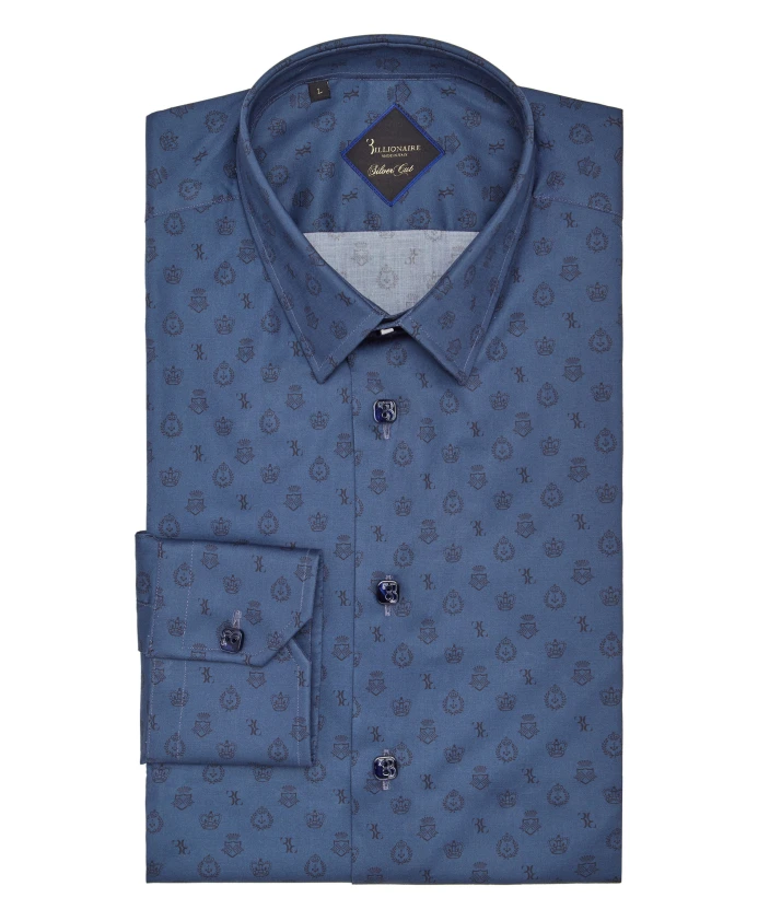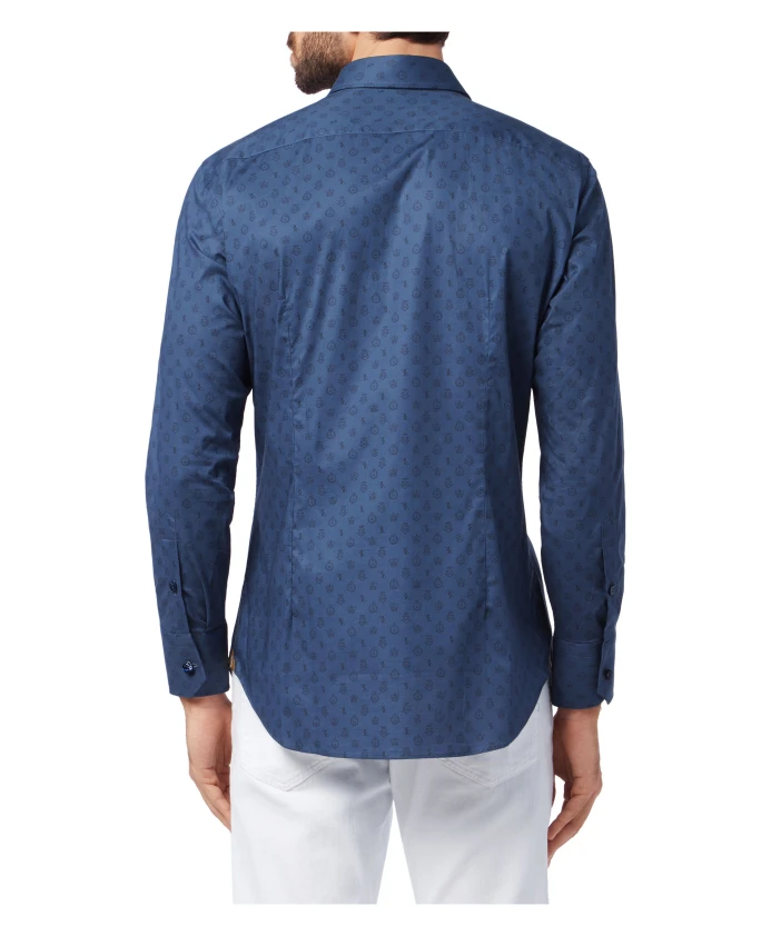 Рубашка Billionaire Milano сочетает в себе эластичный хлопок с гербом и морским принтом по всей поверхности. Она имеет небольшой воротник в форме листьев и квадратные пуговицы из перламутра с логотипом, создавая изысканный приталенный силуэт. Ключевые особенности: Синий | Темно-синий | Хлопок | Эластичная ткань | Пуговицы из перламутра с логотипом | Небольшой воротник в форме листьев | Герб и морской принт по всей поверхности | Квадратные пуговицы с логотипом | Размеры и посадка: Приталенный крой (серебристый) | Состав и уход: 97% хлопок, 3% эластан