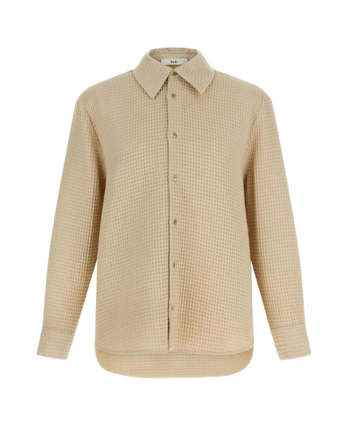 Рубашка Oseary от Sæfr - это рубашка из стираного хлопкового вафельного полотна, которая отличается текстурированной, трехмерной поверхностью и эффектом потертости. Вафельное плетение обеспечивает эластичность и комфорт, создавая выразительный повседневный образ. Ключевые особенности: Цвет слоновой кости | Хлопок | Эластичность | Комфорт | Застежка на пуговицы | Текстура стираного вафельного полотна | Широкий воротник | Закругленный низ | Перламутровые пуговицы | Трехмерная текстура | Размеры и посадка: Классический крой | Состав и уход: 100% хлопок