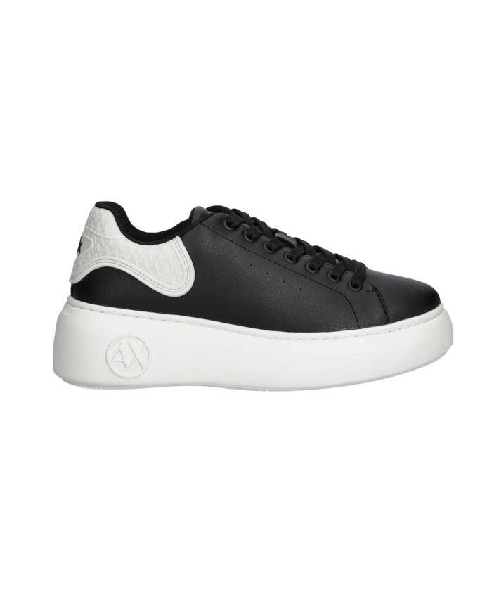 Кроссовки Armani Exchange Flatform (модель XW002149 AF19528) сочетают в себе высокую платформу и поддерживающую конструкцию для повседневной носки. Массивная подошва и мягкая стелька обеспечивают спортивный, стильный вид и надежную поддержку стопы. Ключевые особенности: Черный | Кремово-белый | Искусственная кожа | Прочная резиновая подошва | Легкая конструкция | Поддерживающая конструкция | Шнуровка | Съемная стелька | Усиленный носок | Устойчивый задник | Массивная платформа | Перфорированные боковые детали | Закругленный носок | Логотип на пятке