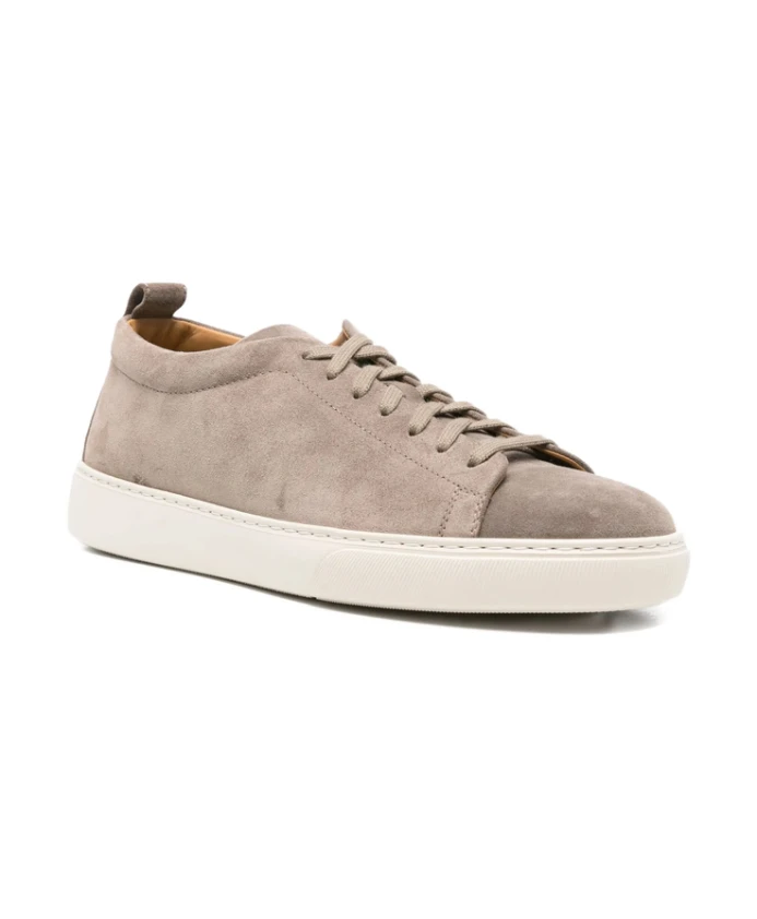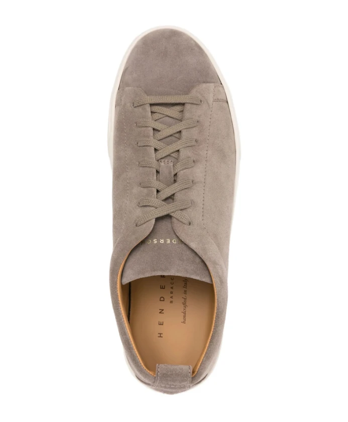 Кроссовки Henderson Baracco Colby - это замшевые туфли на шнуровке с закругленным носком и плоской резиновой подошвой, предназначенные для повседневной носки. Идентификатор модели: COLBY.S.4 TALPA. Ключевые особенности: Серый цвет | Телячья замша | Шнуровка | Плоская резиновая подошва | Кожаная стелька с логотипом | Закругленный носок | Панельный дизайн | Язычок с логотипом | Петля на пятке | Размеры и посадка: Удобная, просторная посадка | Состав и уход за материалами: Телячья замша: 100% | Телячья кожа (подкладка): 100% | Резина (подошва): 100%