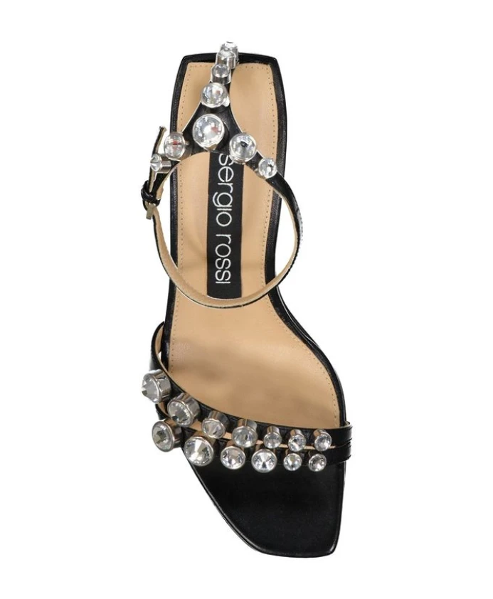 Кожаные сандалии с кристаллами Sergio Rossi, черный
