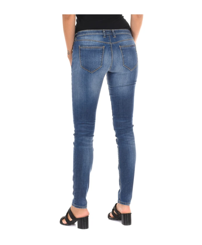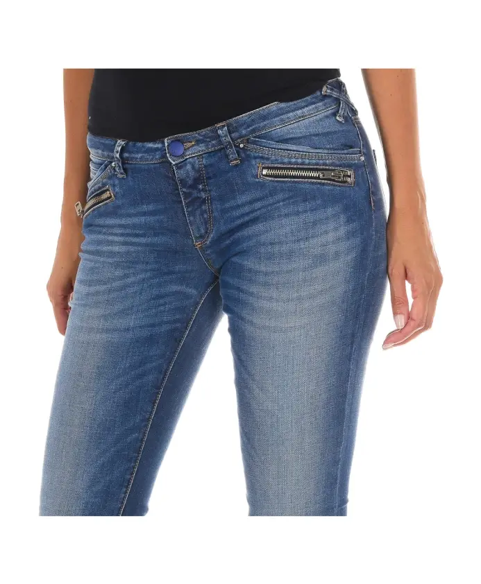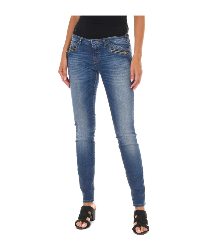 Джинсы MET Skinny для женщин. Длинные джинсовые брюки с петлями для ремня. Застежка на пуговицу и молнию спереди. Два передних кармана и один небольшой карман. Два передних кармана на молнии. Два открытых задних кармана с металлизированным логотипом бренда. Зауженный крой с эффектом потертости. Эластичная ткань. Видимые швы в тон. Состав: 98% хлопок, 2% эластан. Инструкции по уходу: - Машинная стирка при температуре до 40°C. - Гладить при средней температуре, максимум 110°C. - Сушка в сушильной машине. - Не отбеливать. - Не подвергать химчистке.