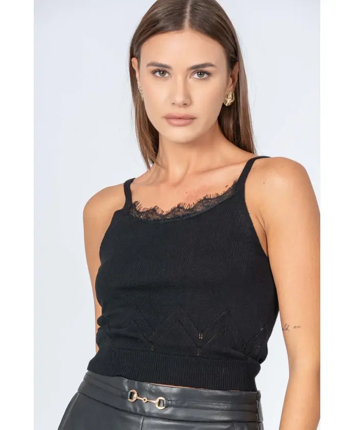 Вязаный топ Kocca KIDAX - это короткий, облегающий топ, предназначенный для многослойных или повседневных образов. Он украшен кружевной отделкой по нижнему краю и имеет ребристый пояс для создания четкого силуэта. Ключевые особенности: Черный | Черный | Полиэстер | Узкие бретели | Кружевная отделка по нижнему краю | Ребристый пояс | Пришитая волнистая отделка на животе | Слегка ребристая текстура | Короткая длина | Размеры и посадка: Рост модели 175 см, размер S/42 | Состав материала и уход: 50% полиэстер | 25% полиамид | 21% акрил | 4% шерсть
