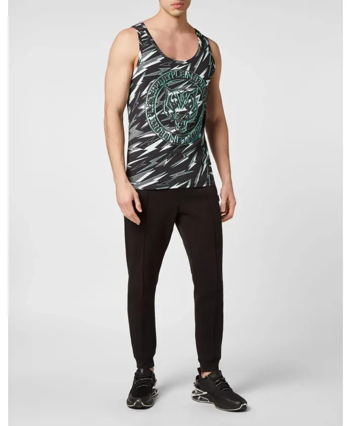 Спортивная майка Plein Sport Tank Top - это майка из хлопкового трикотажа с принтом батик, предназначенная для тренировок и бега. Она отличается свободным, эластичным кроем и привлекательными принтами с логотипом бренда и тигровым рисунком спереди и сзади. Ключевые особенности: Многоцветная | Черный | Мятно-зеленый | Хлопок | Эластичная трикотажная ткань | Без рукавов | Принт батик | Принты с логотипом бренда и тигровым рисунком спереди и сзади | Двойная строчка по низу | Размеры и посадка: Свободный крой | Состав материала и уход: 100% хлопок