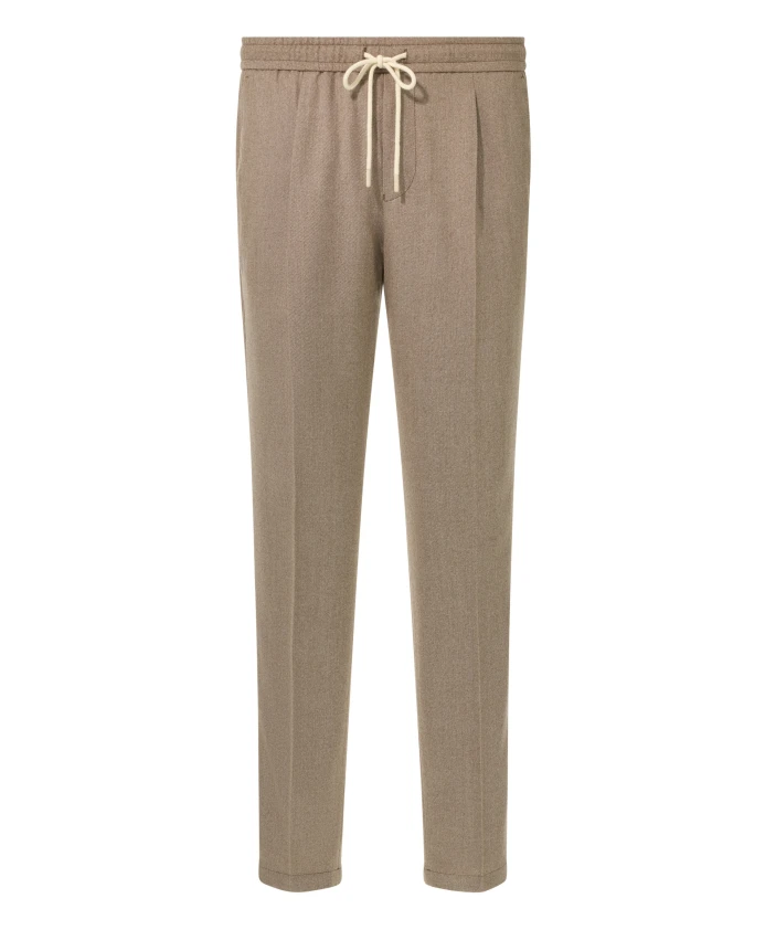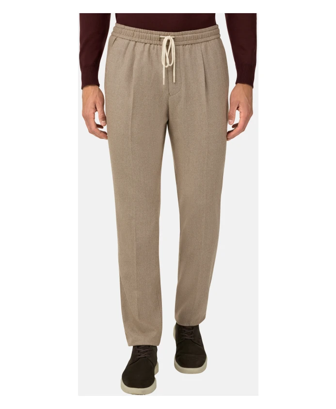 Брюки Boggi Milano City сочетают в себе строгий крой и отделку из шерстяной фланели, предлагая вариант в стиле smart-casual, который сочетает в себе изысканный стиль и регулируемый пояс на шнурке для дополнительного комфорта. Ключевые особенности: Бежевый | Серо-коричневый | Шерстяная фланель | Дополнительный комфорт | Застежка на молнию | Пояс на шнурке | Диагональные передние карманы | Задние карманы | Вытачки с каждой стороны | Фланелевая текстура | Размеры и посадка: Зауженный крой | Регулируемый пояс на шнурке | Состав и уход: 100% шерсть