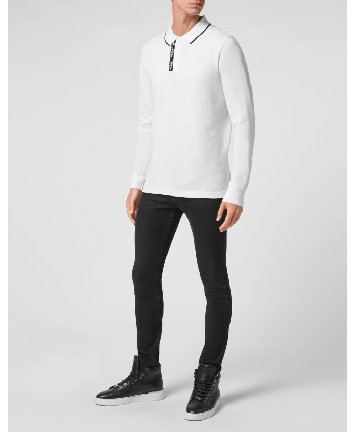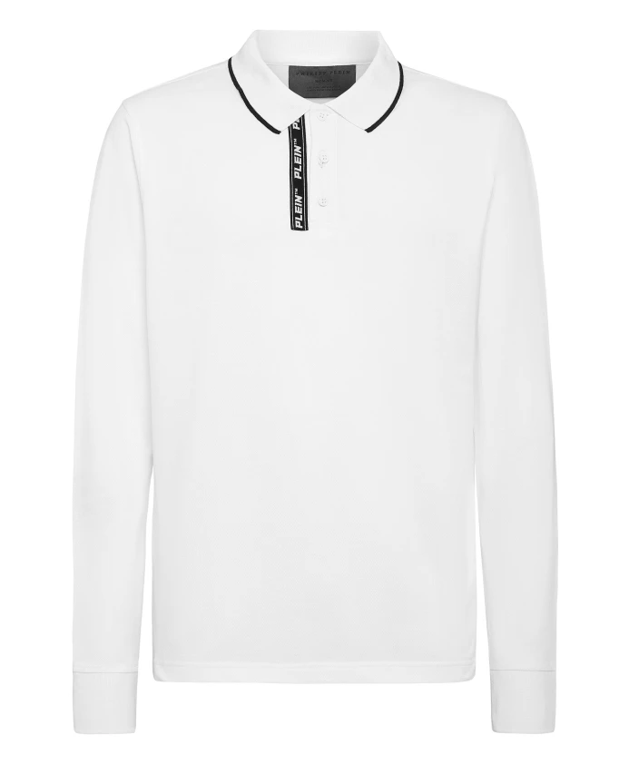 Поло Philipp Plein - это поло с длинными рукавами из хлопкового пике, сочетающее классический крой с характерными деталями бренда. Оно украшено жаккардовой тесьмой на планке с пуговицами и шестиугольной вышивкой PP на груди. Ключевые особенности: Белый | Хлопок | Застежка на пуговицы на воротнике | Жаккардовая тесьма на планке с пуговицами | Длинные рукава | Текстура пике | Ребристые манжеты и воротник | Асимметричный низ с двумя боковыми разрезами | Двойная строчка | Шестиугольная вышивка PP на левой стороне груди | Состав и уход: 100% хлопок