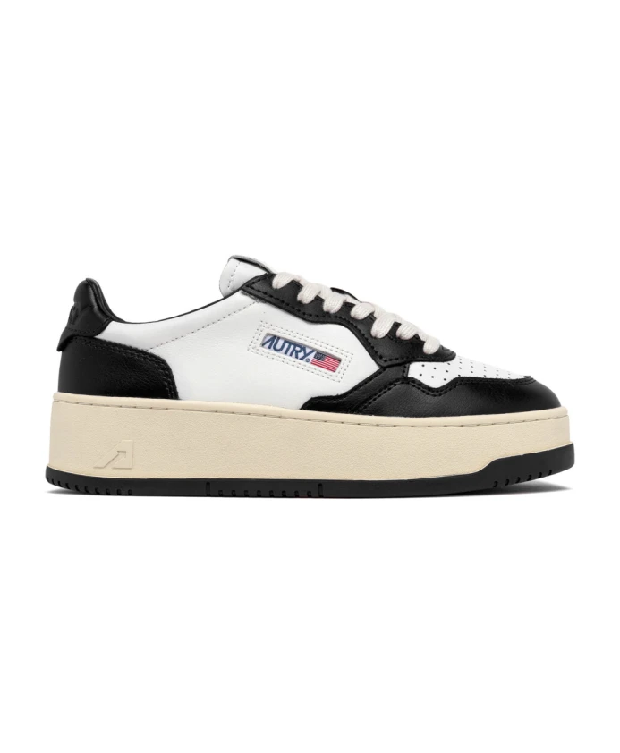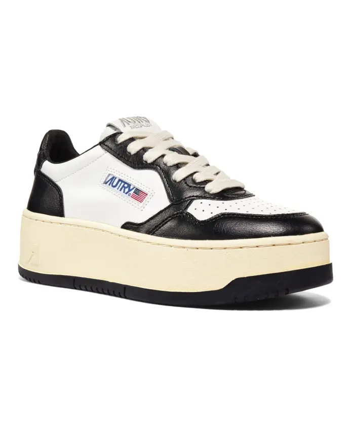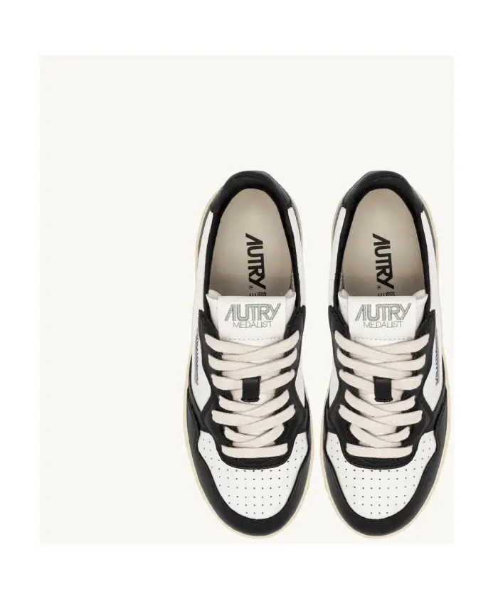 Подчеркните свой стиль с помощью низких кроссовок Autry 'Medalist'. Изготовленные из мягкой кожи с элегантным черно-белым узором, эти кроссовки имеют резиновую подошву на платформе с логотипом бренда. Дизайн включает в себя фирменную нашивку с логотипом по бокам, закругленный перфорированный носок, шнуровку плоскими хлопковыми шнурками, язычок с принтом логотипа, мягкую подкладку в области щиколотки, тисненый логотип на пятке, подкладку из кожи и хлопковой махровой ткани, а также приподнятую кожаную стельку высотой 2 см. Высота подошвы: 4 см.