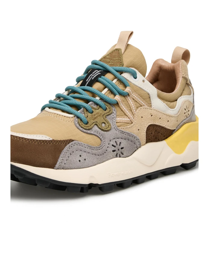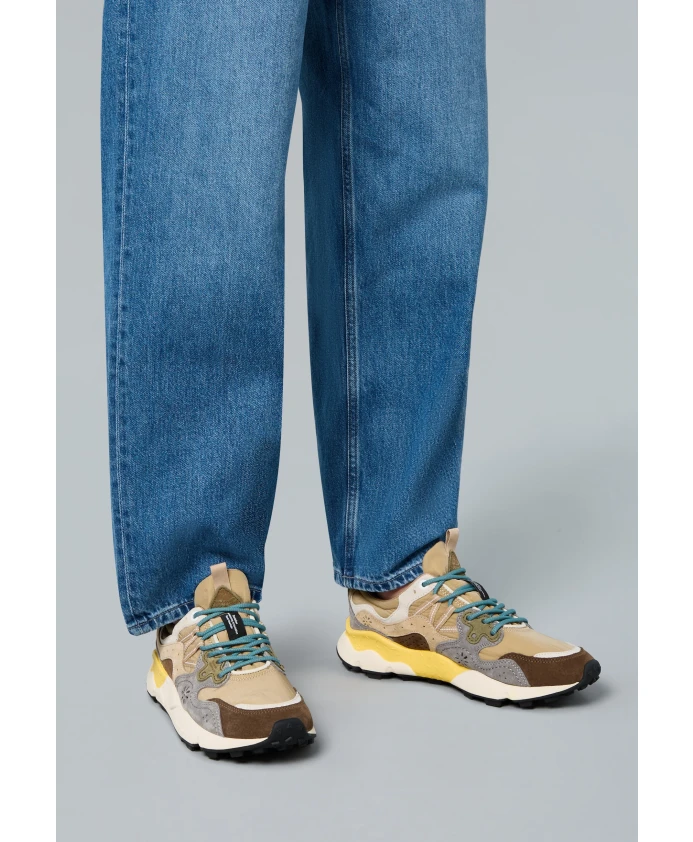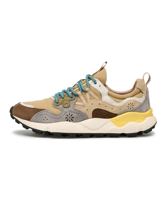 Спортивный дизайн кроссовок Yamano 3 также делает их идеальным выбором для городских образов: верх из технической ткани с замшевыми вставками имеет культовую перфорацию и систему шнуровки с усиленными люверсами и петлями для шнуровки, вдохновленную моделями для активного отдыха. Комфорт и хорошее самочувствие обеспечиваются анатомической и антибактериальной пробковой стелькой и сверхлегкой резиновой подошвой с боковой формой и зубчатым протектором. Продукция Flower Mountain обычно большемерит. Рекомендуется заказывать на один размер меньше.
